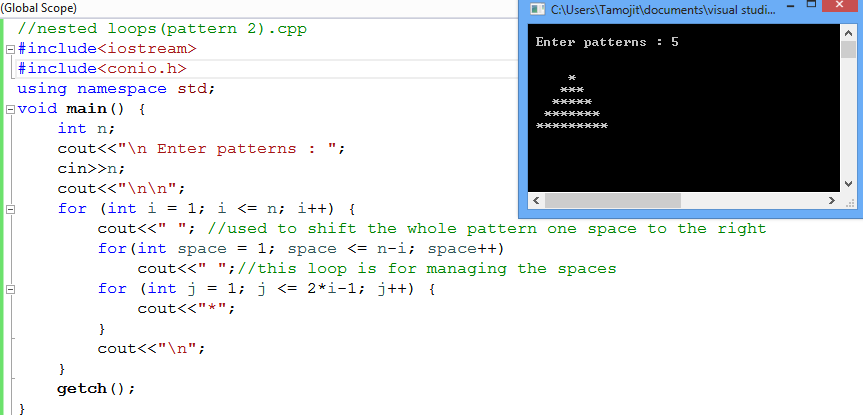 I encourage you to program all these patterns using while loop and try several other patterns by yourself. you can find a lot of these patterns on the internet or in basic books of c++.